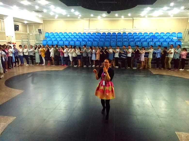 随后,在赵翠荣教授的带领下,同学们进入了活动感受环节。在这一环节中,同学们围成一个圈共同进行“相逢是首歌”、“接龙”、“一起跳”、“暖心卷”等游戏。在每一个游戏的进行中,赵翠荣教授都会让同学们体会自己在做每一个动作时的感受,体味别人带给自己的影响。随着活动的推进,同学们也逐渐放松了心情,同身边人融合在一起,游戏中欢声笑语不断,场面越来越热烈。譬如在“马兰花”环节,为了团队的胜利,有人灵机一动甘当“花蕊”,引得大家笑声阵阵的同时也让同学们感到温暖。