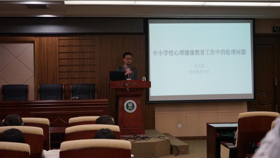 (通讯员:黄勇志)2017年10月12日下午,华中师范大学心理健康教育中心副教授孙启武在华中师范大学逸夫国际会议中心,开展了主题为“中小学校心理健康教育工作中的伦理问题”的培训讲座。来自全国各地区中小学校60余名班主任参与了此次讲座。
