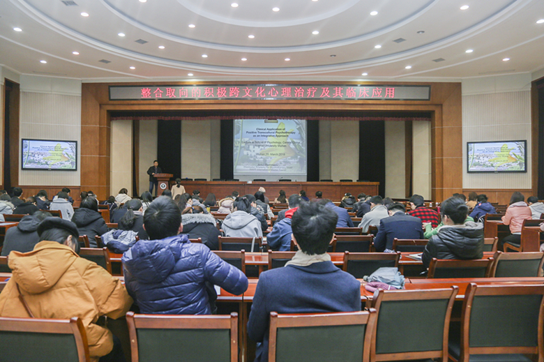 3月20日上午,我校大学生心理健康教育中心邀请来自德国的世界积极心理治疗协会创始人、积极心理治疗国际培训师、督导师阿诺·瑞莫斯教授开展题为“整合取向的积极跨文化心理治疗及其临床应用”的学术讲座。讲座由心理中心副主任吴才智副教授主持,来自武汉各高校心理中心的专职心理健康教师、我校专兼职辅导以及部分师生共计150余人参加了此次讲座。