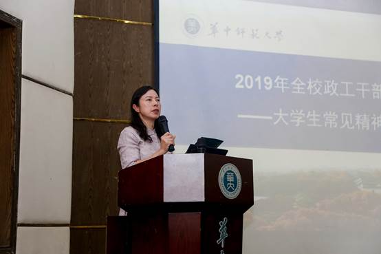 6月13日上午,我校举办了政工干部心理危机预防与干预技能系列培训之大学生常见精神障碍识别的培训。本次培训由武汉市精神卫生中心(武汉市心理医院)创伤病房主任张淑芳医生主讲。党委学生工作部(人武部)部长韩君华、党委学生工作部(人武部)副部长吴建成、部分学院领导、各学院辅导员及心理中心部分专职教师共150余人参加此次培训。培训由韩君华部长主持。