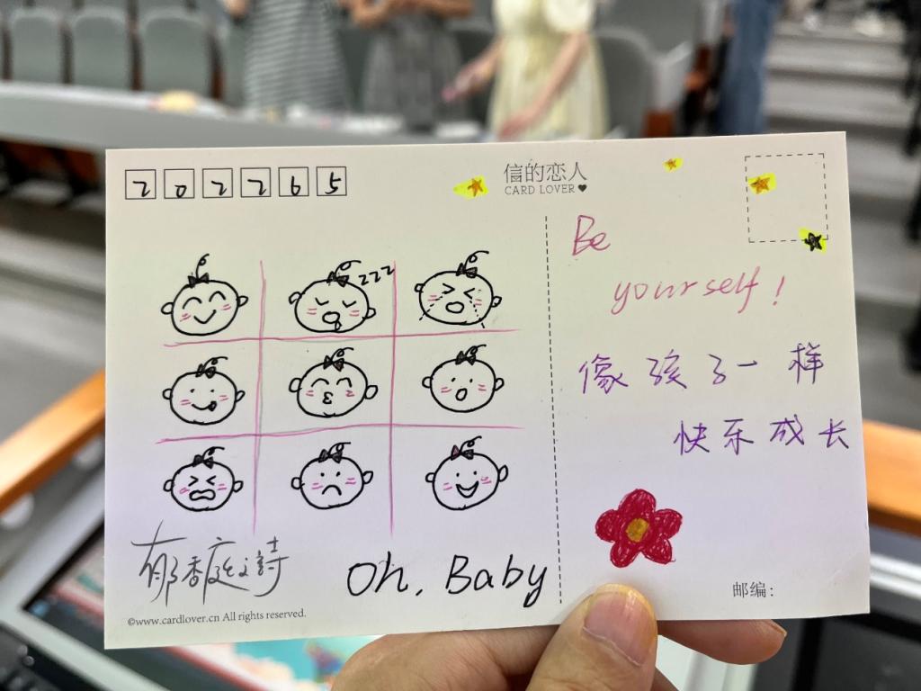 第二个环节是盲盒祝福。由所有团学干部送上寄语,他们将由衷的祝福写在贺卡上,用绘画、文字等形式表达对同学们期末取得好成绩、交到好朋友、找到另一半、认真做自己、请你喝奶茶等各种主题的祝福语。在这个环节中,同学们之间表现出浓浓的同学情,同时也对团学干部的辛勤工作和祝福表达感激之情。